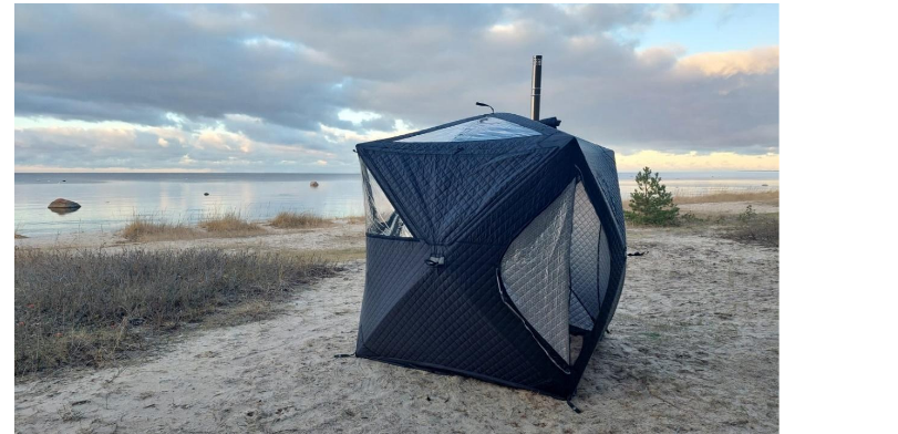 W cenie: SaunaCube S Panorama 2 z elementami do zakotwienia: sznurki i śruby do wkręcania w grunt, dopinaną podłogę, torbę transportową. DODATKOWO POKROWIEC PRZECIWDESZCZOWY.